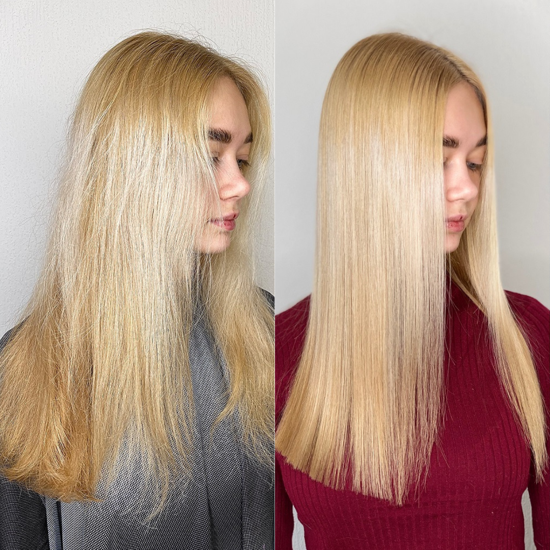 Bleichen, chemische Behandlung und drastisches Hitzestyling können das Haar stark belasten und es sowohl innen als auch außen schwer schädigen. Durch fortschrittliche Forschung und Tests haben unsere Wissenschaftler entdeckt, dass Keratin, Seidenpeptide, Biotin, Kollagen, Koffein, Panthenol und Kokosnuss-Alkane wichtige Wirkstoffe für die Reparatur von Schäden sind. Diese vollständige Behandlung macht Ihr Haar nach der ersten Anwendung glatt, seidig und gesund aussehend.