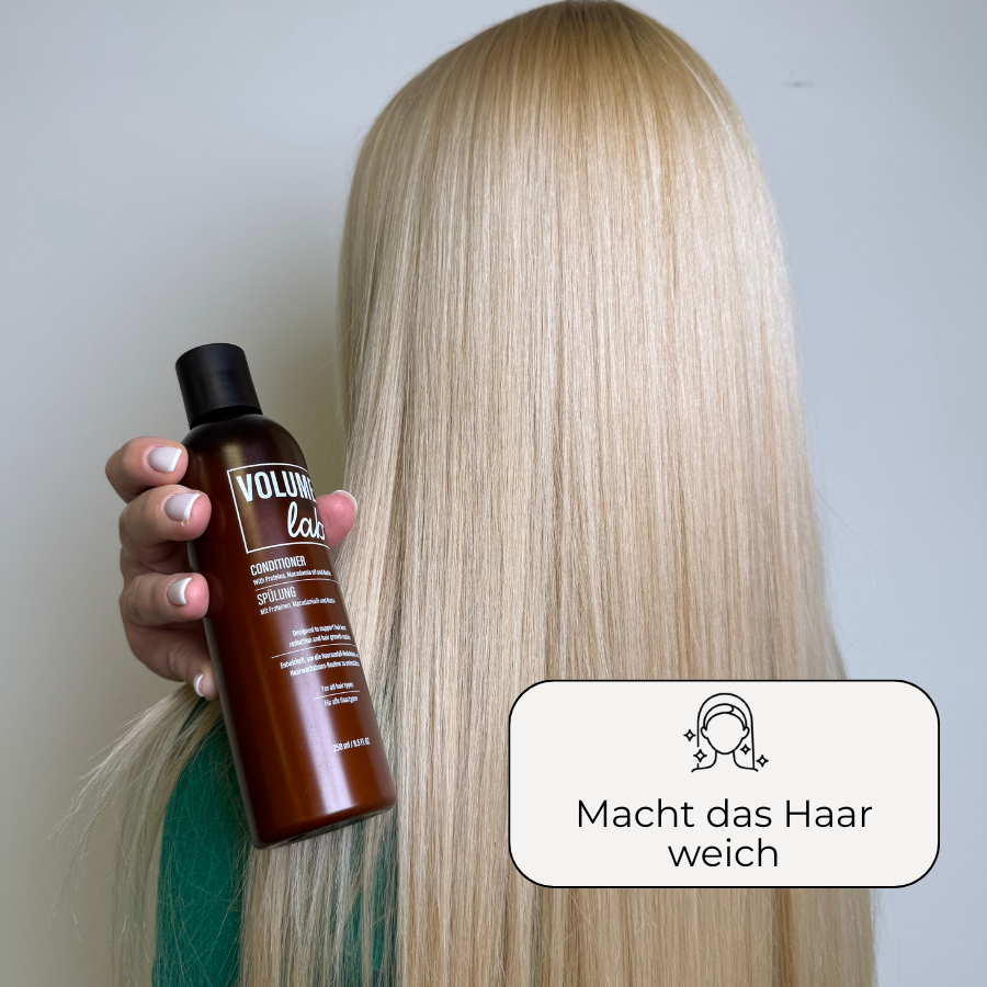 Volume Lab Spülung (250ml): Haarspülung über die gesamte Länge des nassen Haares verteilen. 1-2 Minuten einwirken lassen und ausspülen.
