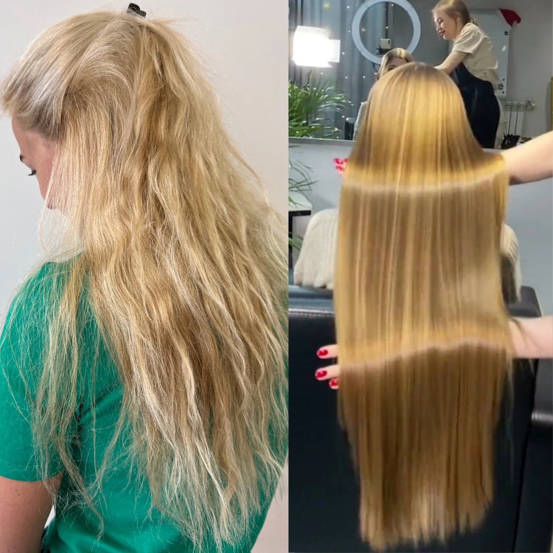 Il s'agit d'un produit de réparation capillaire de nouvelle génération à base d'eau. Grâce à leurs molécules extrêmement petites, les ingrédients pénètrent instantanément dans les couches les plus profondes du cheveu, ce que les masques capillaires habituels ne peuvent pas faire. Les acides aminés et les ingrédients hydratants remplissent et réparent les structures capillaires endommagées, rendant les cheveux plus forts et plus brillants. Grâce à sa technologie unique, il ne remplit que les structures capillaires endommagées, de sorte que les cheveux ne sont pas alourdis. Il crée une couche supplémentaire, ultra-légère, qui recouvre les cheveux et leur donne une belle brillance.